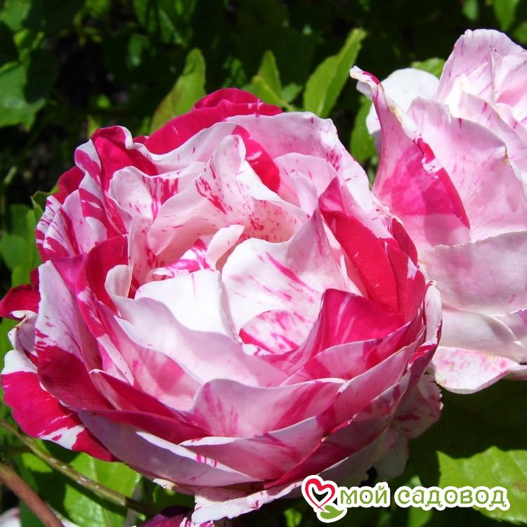 Сорт привлекает яркой двухцветной окраской. Доминирует темно-красный фон, по которому разбросаны полосы и размытые пятна белого цвета. Окраска цветков сохраняет контрастность до отцветания, не боится ни жару ни дождь. Цветки бокаловидные, позднее чашевидные, достигают 8 см в диаметре и состоят из около 30 лепестков. Аромат сильный, пряный, сладкий. Во время цветения соцветия покрывают весь куст. Побеги мощные, ветвистый куст достигает 1-1,5 м, цветки не поникают. Ширина куста 75-110 см. Листва крупная, темно-зеленая, густая. Хранение до посадки Как хранить растения, если вы получили посылку раньше начала посадочного сезона? Для хранения саженцев роз есть несколько простых правил: Если роза спит — храним в холодильнике или подвале при температуре от 0 до +4 °С, или на улице в коробке под толстым слоем снега. Если роза проснулась — прикопать в теплице или высадить в сад, обеспечив укрытие. Можно посадить розу в горшок и хранить в прохладном подвале или на балконе/лоджии, притеняя от прямых солнечных лучей. Во время хранения периодически проверяйте состояние посадочного материала. Поврежденные, загнившие части корней удалите и обработайте фунгицидом (Топаз, Фитоспорин).
